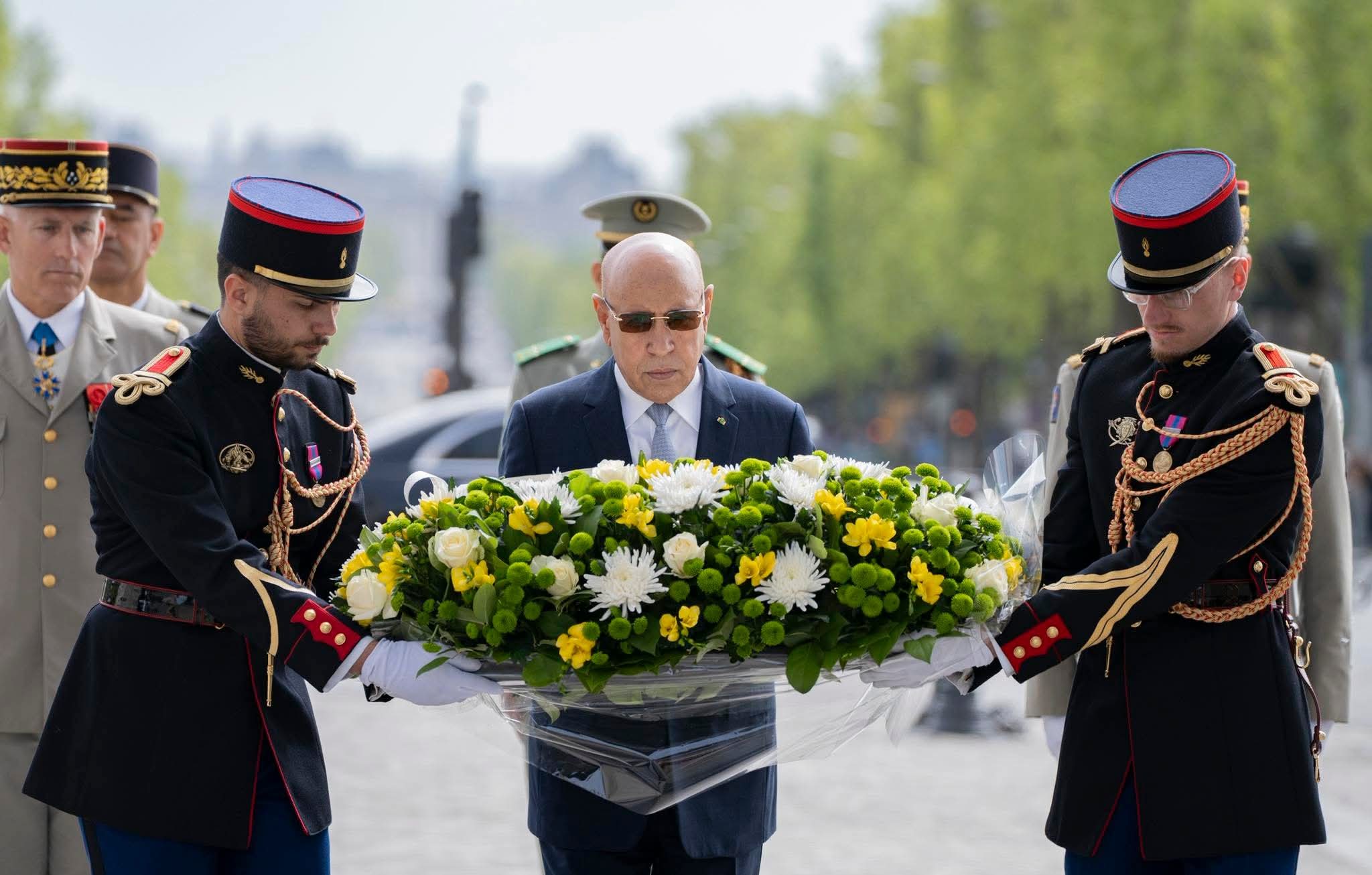 ولد غزواني يضع إكليل زهور على قبر الجندي المجهول بقوس النصر في باريس