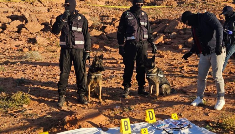 وقد أسفرت الخبرة التقنية وعملية تحديد المواقع عبر الأقمار الاصطناعية المنجزة باستخدام الإحداثيات والمعطيات الجغرافية المحجوزة في إطار البحث، عن تحديد المنطقة المشكوك فيها بإقليم الرشيدية وتحديدا بالضفة الشرقية “لواد گير” ب”تل مزيل”، جماعة وقيادة “واد النعام” بمنطقة بودنيب على الحدود الشرقية للمملكة.