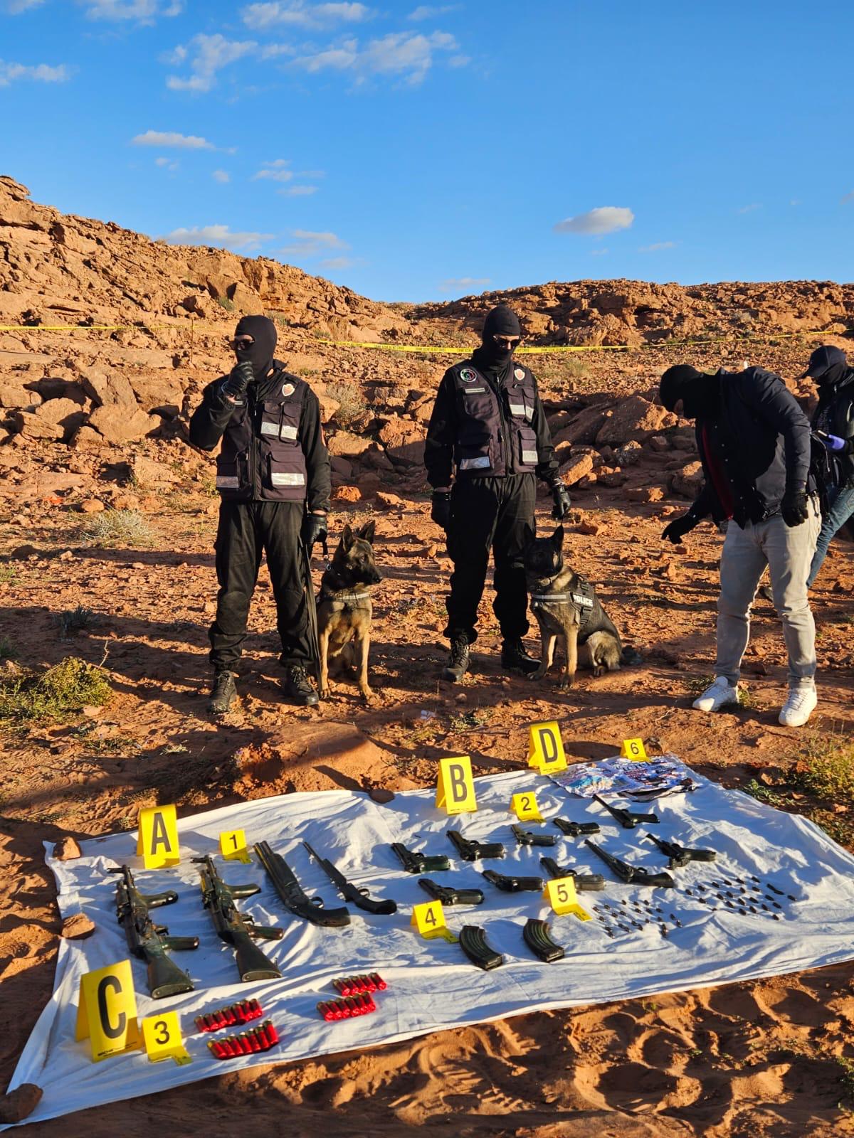 وتتمثل الأسلحة النارية المحجوزة في إطار هذه العملية ، في سلاحي كلاشينكوف مع خزانين للذخيرة، وبندقيتين ناريتين، وعشر مسدسات نارية فردية من مختلف الأنواع، وكمية كبيرة من الخراطيش والطلقات النارية من عيارات مختلفة.
