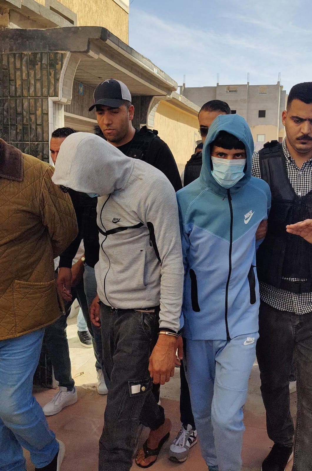 ونتيجة للأبحاث والتحريات والخبرات التقنية والعلمية التي بوشرت بمسرح الجريمة وبمحيطه أمكن التوصل إلى هوية مشتبه فيهما وتوقيفهما بحي النهضة بالمدينة، وحجز الدراجة النارية التي أستخدمت في هذه العملية.