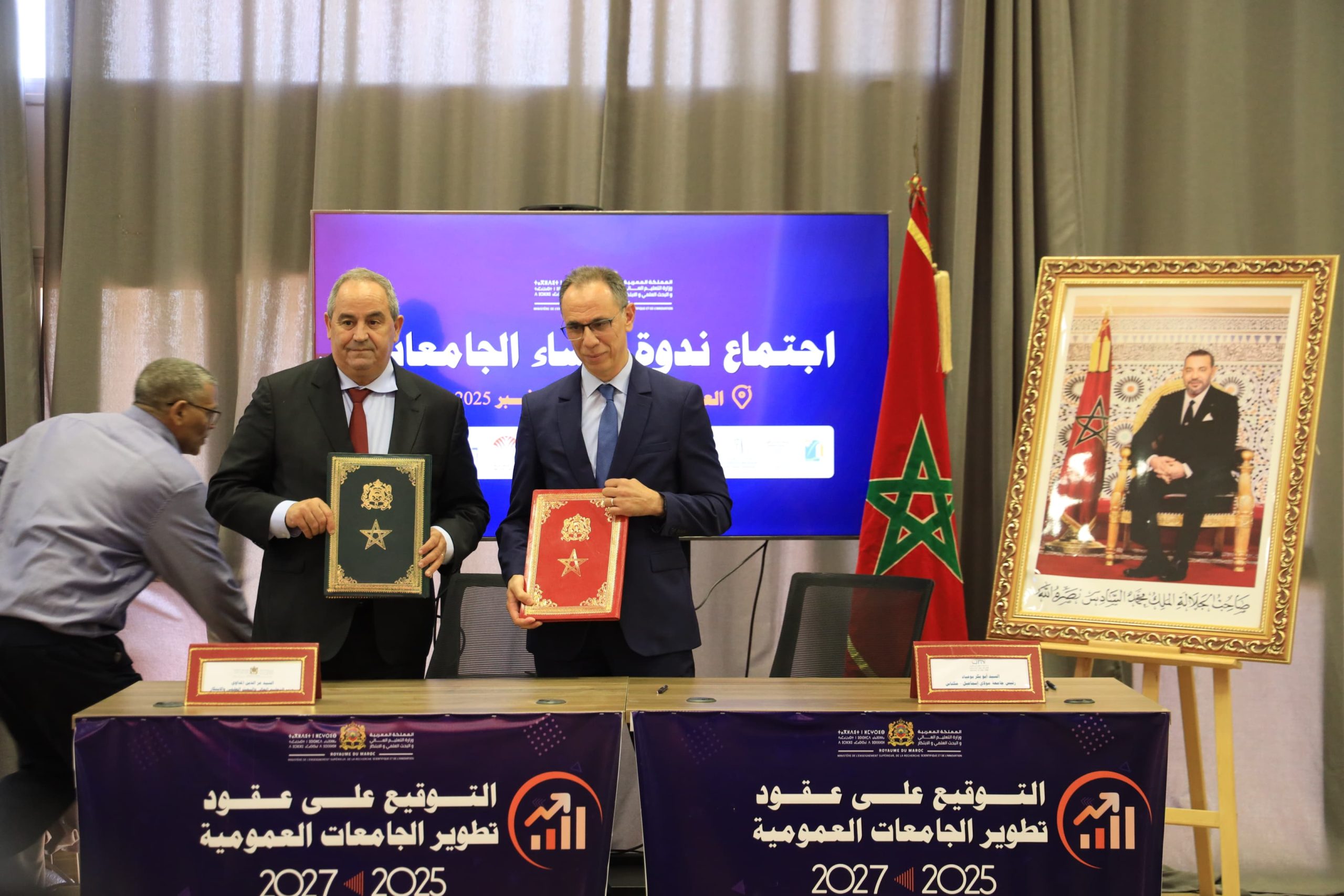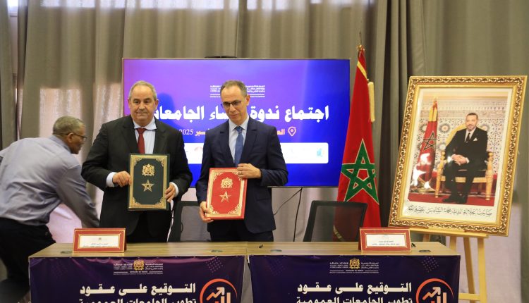 في إطار تنفيذ التوجيهات الملكية السامية الداعية إلى إصلاح منظومة التعليم العالي والبحث العلمي والارتقاء بها، وإلى ترسيخ ثقافة النتائج، وتكريسا لمبادئ الحكامة الجيدة، وحرصا على إرساء نموذج جامعي قائم على نجاعة الأداء والاستقلالية المسؤولة للجامعات، ترأس وزير التعليم العالي والبحث العلمي والابتكار، السيد عز الدين المداوي، يوم الجمعة 7 نونبر 2025، بمقر المدرسة العليا للتكنولوجيا بمدينة العيون، مراسم حفل توقيع عقود تطوير الجامعات العمومية 2025–2027.