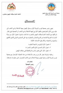 ودعت الجمعية في بلاغ لها جميع الكسابة وملاك قطعان الإبل بنفوذ مراعي تيرس الراغبين في الاستفادة من الفحول هو التواصل مع الجمعية.